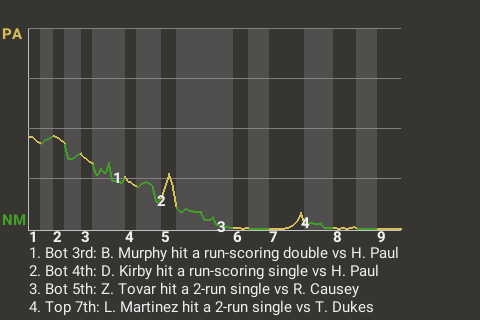 2 (15, 3rd Inning off H. Paul, 0 on, 0 outs; 8th Inning off T. Aparicio, 1 on, 1 out)